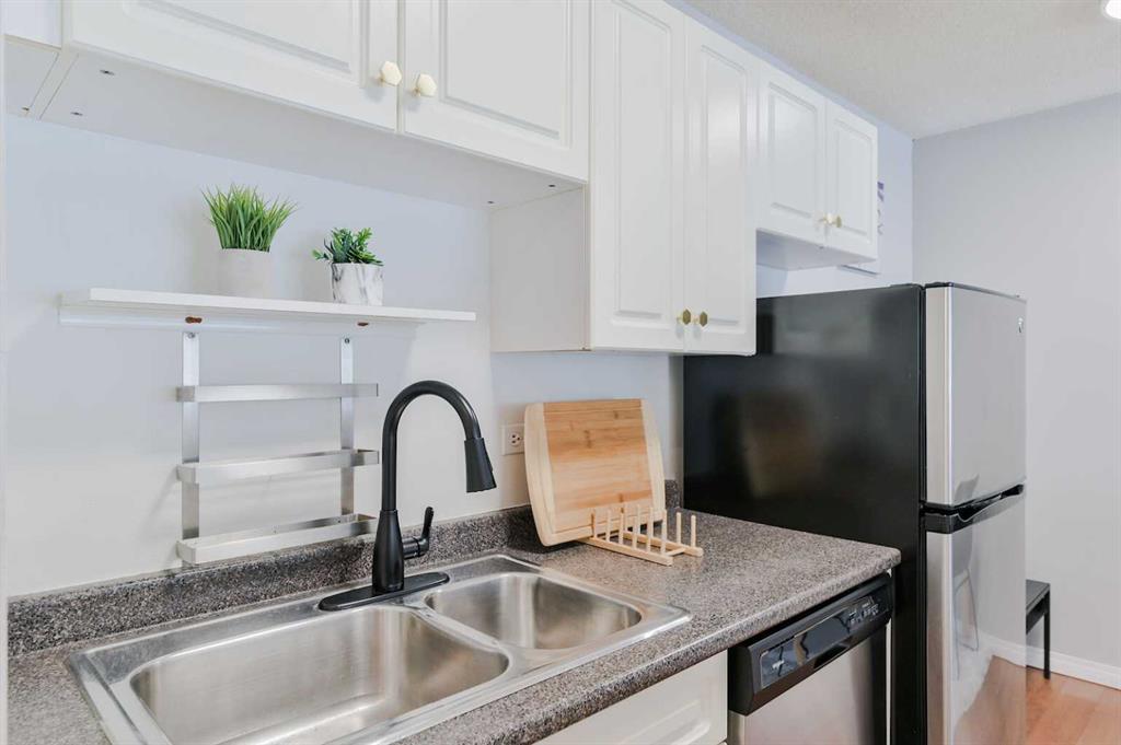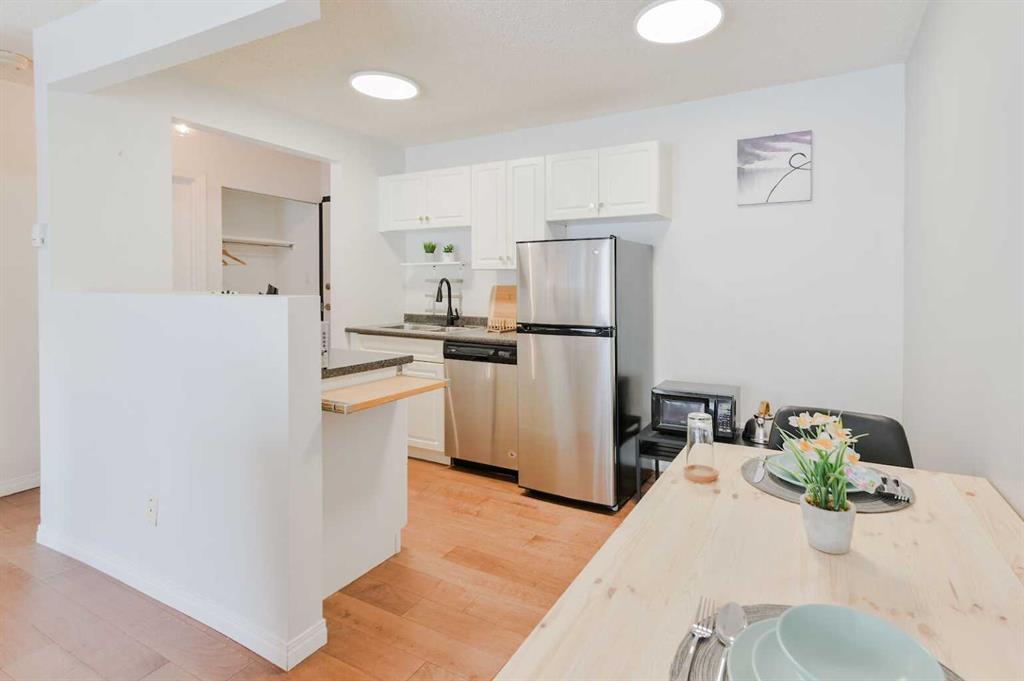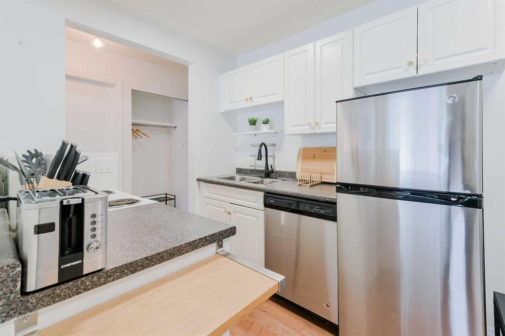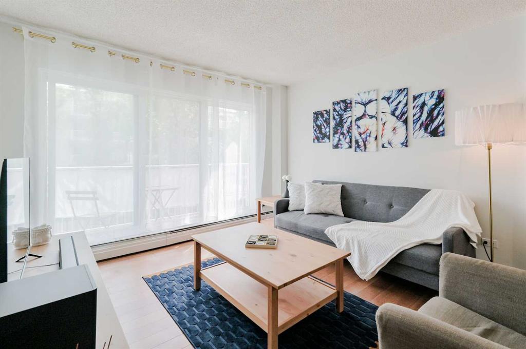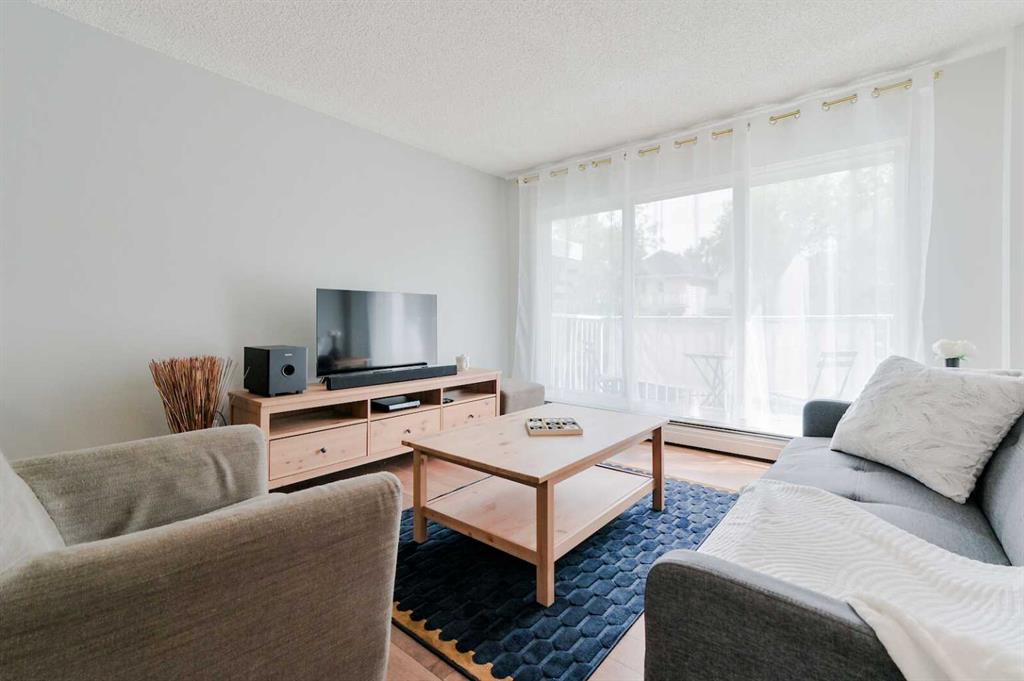 | ALL FURNITURE INCLUDED | Welcome to Hardwood Green, a peaceful escape tucked along a quiet, tree-lined street in the heart of vibrant Sunalta. This bright, secondfloor, south facing home in a solid concrete building perfectly balances comfort, style, and an unbeatable location. Inside, you’ll find a spacious, sun filled layout featuring hardwood flooring, updated washroom, and an updated kitchen with crisp white cabinetry, expansive countertops, tile backsplash, and clean appliances. The open living and dining area is flooded with natural light and flows seamlessly onto your private south facing balcony overlooking the leafy street large enough for a bistro set and ideal for morning coffee or evening unwinding. The generously sized bedroom easily accommodates a large bed and additional furnishings. A stylish four piece bathroom. Additional assigned surface parking stall with plug in. Hardwood Green is exceptionally well managed, offering low condo fees and a strong reserve fund. Recent upgrades include secure fob entry, vinyl windows and siding, a new roof, updated balconies and railings, and a central boiler system. Enjoy the charm and convenience of this sought after Sunalta location just a five minute walk to the Sunalta LRT Station and the shops, cafés, and restaurants along 17th Avenue. Nearby amenities include the Sunalta Community Association, tennis courts, parks, a community garden, and extensive bike and walking paths. An excellent opportunity for first time buyers or savvy investors seeking outstanding value in a prime inner-city location.
