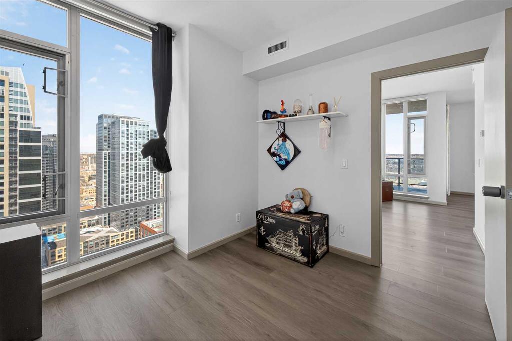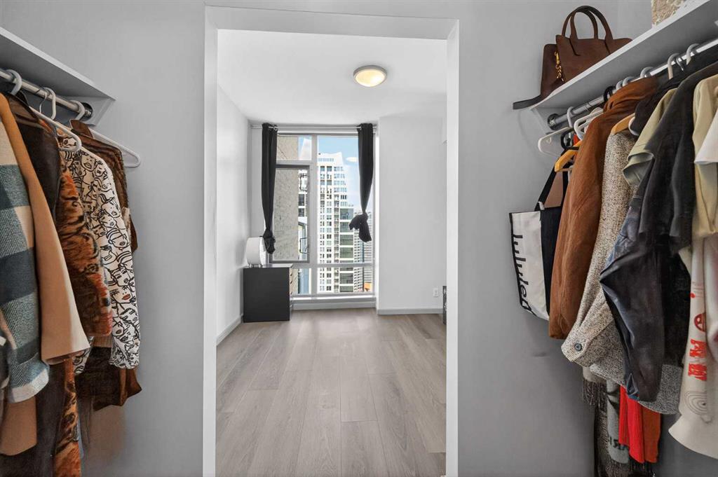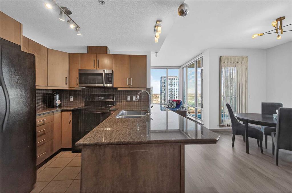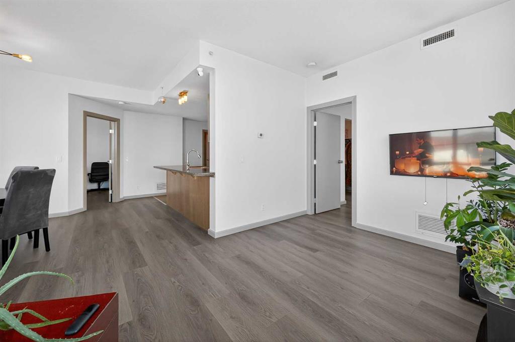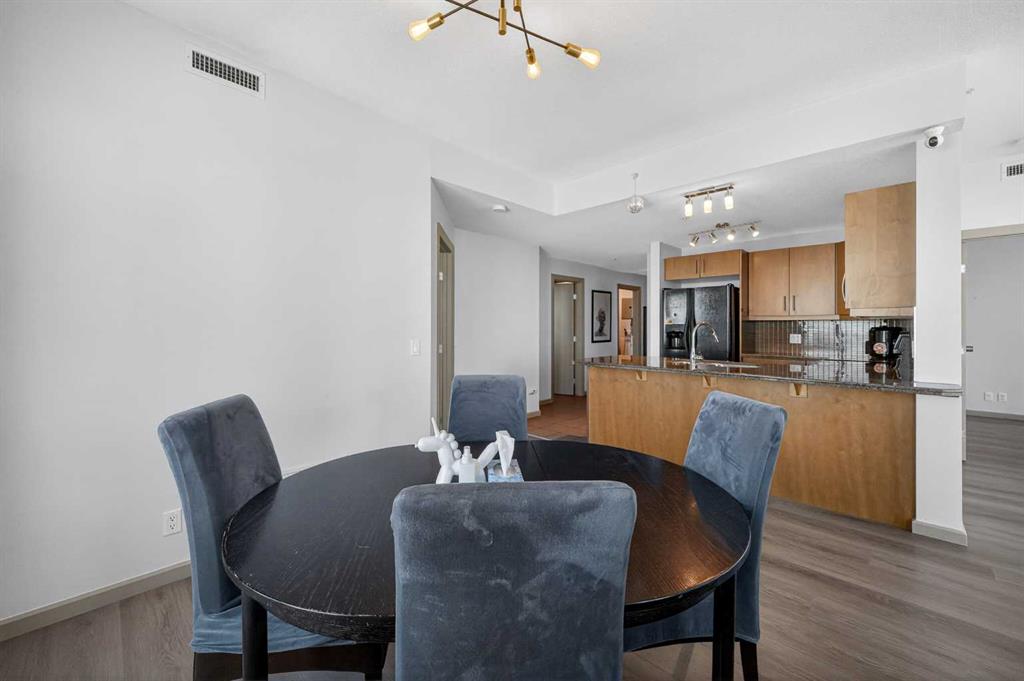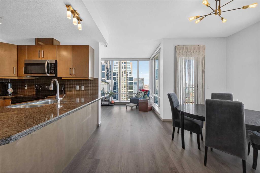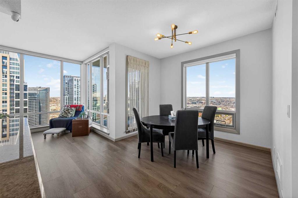 Experience elevated urban living in this exceptional corner unit, featuring a rare wrap-around glass balcony with unobstructed east and south-facing city views. Flooded with natural light throughout the day, this stunning outdoor space also offers a front-row seat to seasonal fireworks—perfect for both relaxing evenings and vibrant entertaining. Inside, the thoughtfully designed open-concept layout is enhanced by 9-foot ceilings and expansive windows, creating a bright, modern, and airy atmosphere. The contemporary kitchen is equipped with sleek cabinetry, stainless steel appliances, under-cabinet lighting, and ample counter space, seamlessly connecting to the dining and living areas for effortless everyday living. The spacious primary bedroom features a walk-through closet and a private ensuite, while the second bedroom and full bathroom provide versatile options for guests, a home office, or shared living arrangements. Ideally situated in the heart of Victoria Park, this home offers unparalleled convenience. With everyday essentials like Shoppers Drug Mart and dry cleaning services just downstairs, plus a wide array of restaurants, cafés, and entertainment options within walking distance, everything you need is right at your doorstep. Enjoy easy access to 17th Avenue, Stampede Park, the Saddledome, BMO Centre, and the Victoria Park C-Train Station, along with major routes including Deerfoot Trail, Memorial Drive, and Macleod Trail. This well-managed building features premium amenities such as a fitness centre, hot tub, party room, and theatre room. The unit is complete with titled underground parking and additional storage, adding both comfort and convenience. Whether you’re a first-time buyer, investor, or looking to enjoy the best of downtown living, this is a rare opportunity in one of Calgary’s most dynamic communities.